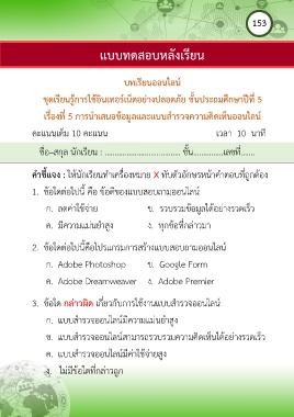 คำชี้แจง : ให้นักเรียนทำเครื่องหมาย X ทับตัวอักษรหน้าคำตอบที่ถูกต้อง