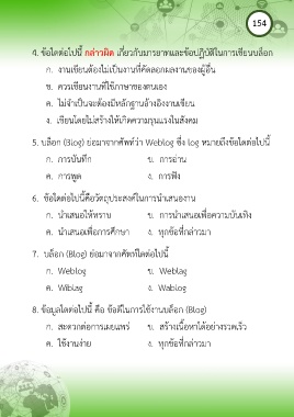 4. ข้อใดต่อไปนี้ กล่าวผิด เกี่ยวกับมารยาทและข้อปฏิบัติในการเขียนบล็อก