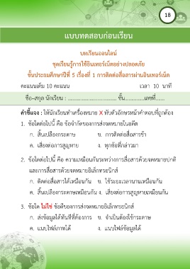 ชั้นประถมศึกษาปีที่ 5 เรื่องที่ 1 การติดต่อสื่อสารผ่านอินเทอร์เน็ต