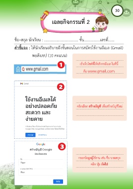 คำชี้แจง : ให้นักเรียนอธิบายถึงขั้นตอนในการสมัครใช้งานอีเมล (Gmail)