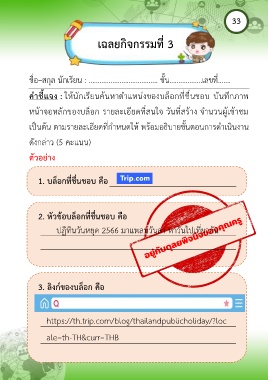 คำชี้แจง : ให้นักเรียนค้นหาตำแหน่งของบล็อกที่ชื่นชอบ บันทึกภาพ