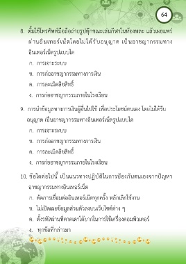 10. ข้อใดต่อไปนี้ เป็นแนวทางปฏิบัติในการป้องกันตนเองจากปัญหา